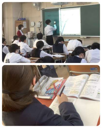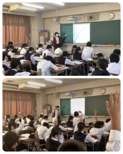 1年生の理科の授業です。エタノールの沸点についてに学習をしています。皆さん、丁寧にグラフが描けています。