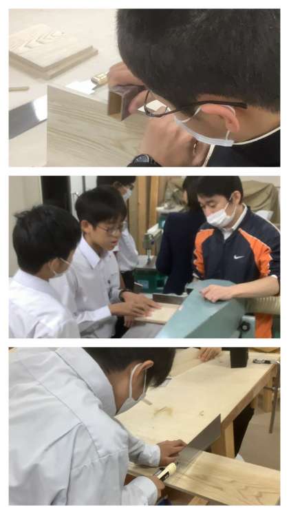 1年6組の技術科の授業では、マルチラックを製作しています。完成が楽しみです。