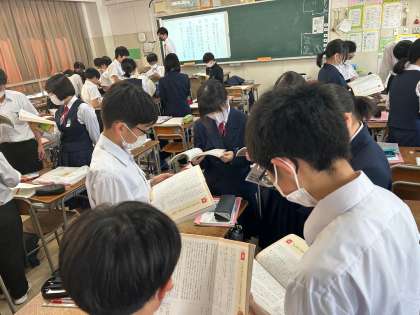 「みんなでいるから大丈夫」の文章を班で音読していました。そして、文章の中からわかりにくい言葉をピックアップし、意味を書き加えていました。すごい、集中力でがんばっています!