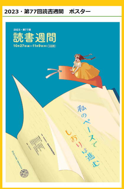 今年の読書週間は11月9日(木)までです。ポスターには「私のペースで しおりは進む」。この期間に合わせて、文部科学省は、子供の読書活動を推進するため、「子供の学び応援サイト」に特設ページ「子供の読書キャンペーン〜きみに贈りたい1冊〜」が開設しています(こちら)。この特設ページでは、著名人による子供たちへのおすすめの本とメッセージや読書関係団体の取組等が紹介されています。