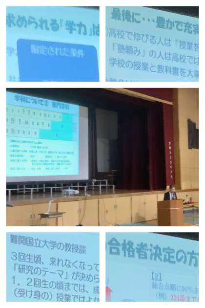 第2回進路説明会を開催しましたところ、3年生の保護者の皆様方には、あいにくの雨模様となりましたが、ご来校いただき、熱心にメモを取りながらお話を聞いていただきありがとうございました。また、講師としてお越しいただきました校長先生におかれましては、お忙しい中、ご講演いただき、ありがとうございました。