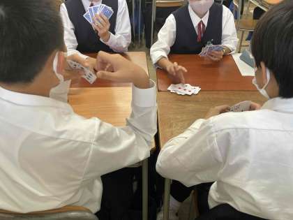 写真の5組でも、周りのメンバーの様子やカードの枚数を見ながら、ルールを考えてゲームをしている様子が見られました。