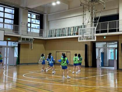 初めてオールコートを使って、試合を行い、コートを広く使いながらパスやシュートを積極的に行いました。