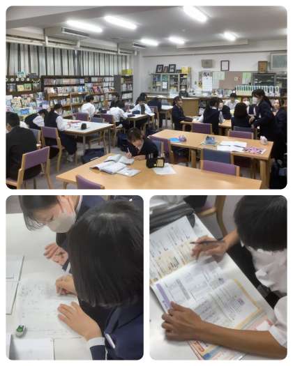 学校元気アップでは、期末テストに向けて放課後に「テスト前学習会」を行っています。自学自習を基本としつつ、教え合う姿も見られます。元気アップのコーディネーターとボランティアの皆さま、いつも東中生のためにありがとうございます。