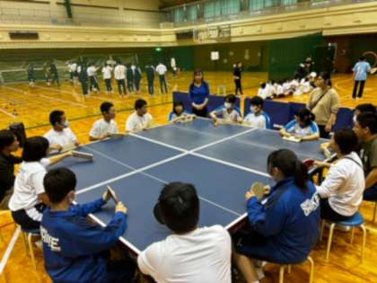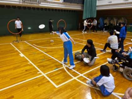 「ボッチャ」に続いて、「フライングディスク」と「四面卓球バレー」に取り組みます。