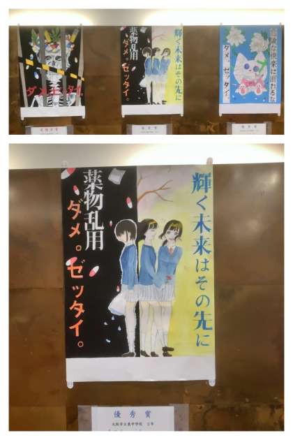 薬物乱用防止啓発ポスターの優秀賞に2年生の作品「輝く未来は その先に」が選ばれました。おめでとうございます!