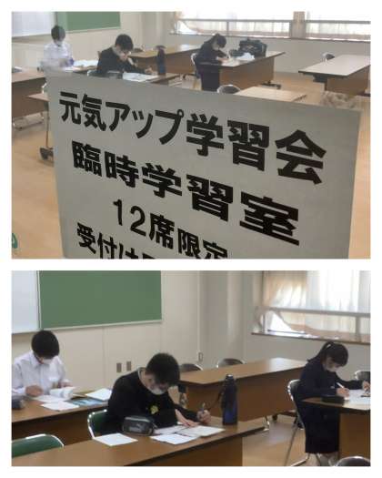 図書室では、昼食を各自で済ましてから集中しての元気アップテスト前学習会。元気アップの皆さま、いつも東中生のためにありがとうございます。
