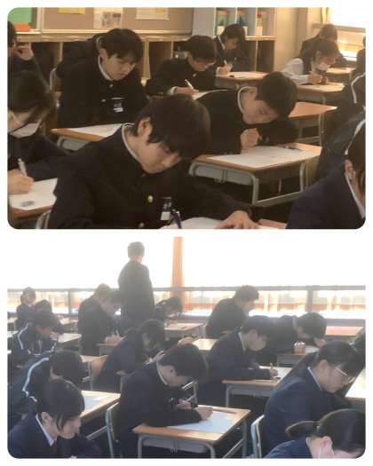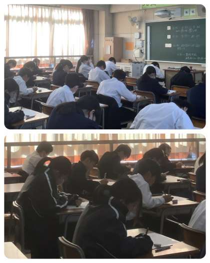 2年生の教室では、答案に書き込む音が聞こえてきます。