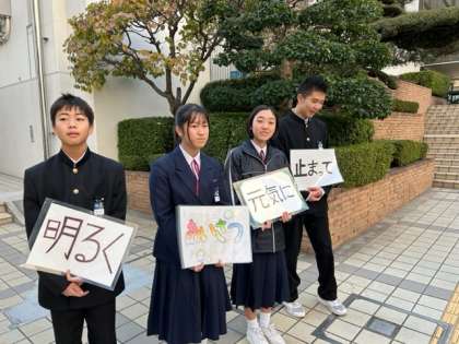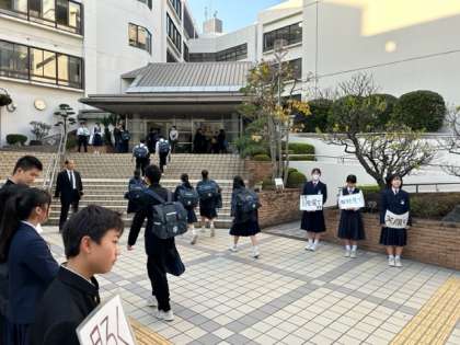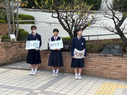 生徒会や風紀委員があいさつ運動をしてくれました。「笑顔で」「明るく」と書いたカードをもってあいさつしてくれていますが、本当に素敵な笑顔であいさつしてくれる生徒もたくさんいます。