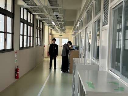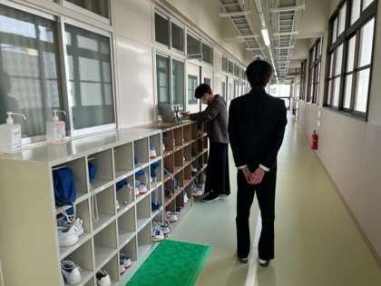 音楽室では練習をしながら順番をまっていますが、廊下では歌唱の実技テストが行われています。パソコンで伴奏音源を流しながら、動画の撮影もおこなわれ、teamsで個人でテストの振り返りもできるようになってます。