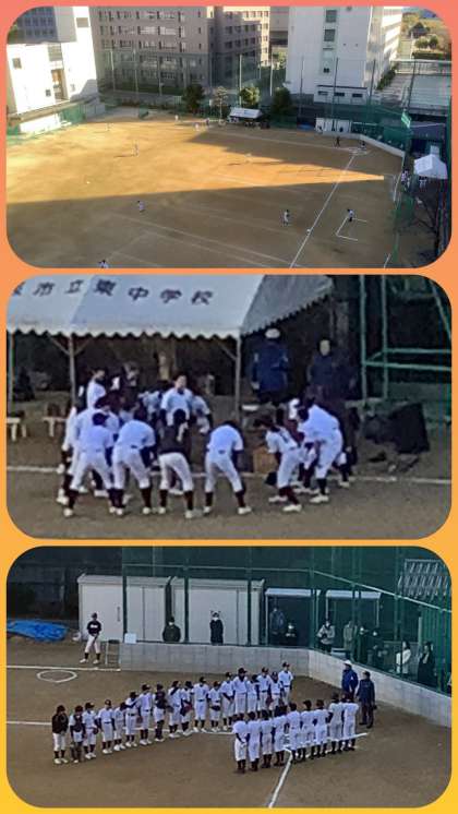 大変寒い中、観戦いただきました保護者の皆さま、これまで野球部の活動にご理解とご協力、ご支援を賜りました3年生の保護者の皆さま、ありがとうございました。新チームの活動にも、引き続き、ご理解とご協力、ご支援を賜りますようよろしくお願いいたします。