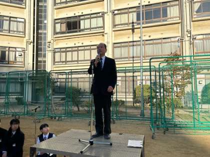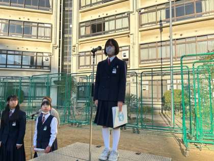 常置委員会からの連絡のあと、校長先生からは、「昨日から障害者週間、今日からは人権週間、そして12月10日は世界人権デーです。誰かのことではなく、大切な命を持って生きている一人一人のことなのです。心が暖かくなる学校にしましょう」とご講話いただきました。