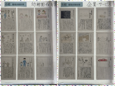 2年生の職場体験のまとめの壁新聞が完成してきました。