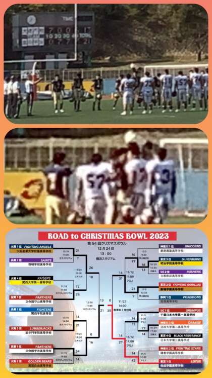 さぁ、クリスマスボウルで、東中卒業生がまた再現されます。ケガに気をつけて、高校生活のラストゲームを悔いなきように全力で楽しんでください。