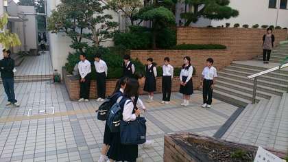 「おはようございます!」の元気で明るい声が、正門前で響いています!