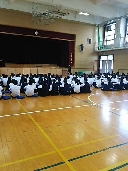 説明をしっかり聞いて、このあと一度各クラスで歌ってみます。どんな歌声が響くか楽しみです。