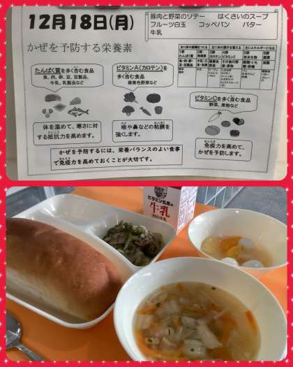 たんぱく質、ビタミンA(カロテン)について、かぜを予防する栄養素として紹介されています。
