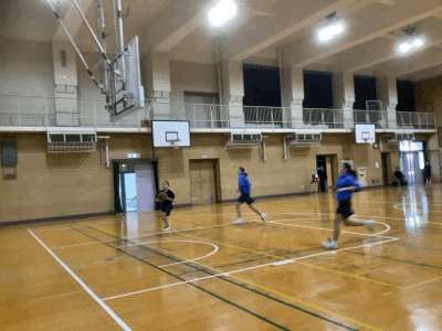 女子バスケットボール部が、体育館を全面使って練習しています。ちょうど3人でパスを回してシュートを打つ練習で、高い集中力を発揮し、次々とゴールが決まります。この後、自然に声を掛け合うようになったと顧問の先生から嬉しい報告をいただきました。何気ない練習から、自分たちで集中してやる練習に切り替わり、シュートの精度も上がったようです。何かコツを掴んだようです。