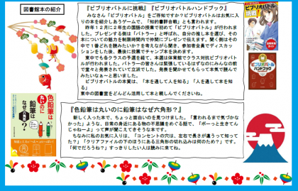 今年のお正月は、皆さんはどのように過ごしましたか?どんな楽しいことがあったか、図書室に話に来てくださいね。