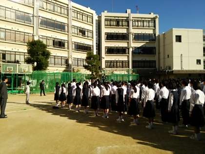 続いて校長先生からは、昨日の大阪マラソンについてのお話。学校目標(校訓)の一つでもある「心優しく生きよう」について、もう一度考えてみましょうというお話がありました。文化発表会・合唱コンクールが迫り、クラスの仲間が協力し合い、励まし合い、練習に取り組んでいると思います。しかし、一方では、仲間を困らせたり、辛い思いにさせてしまっていることはないですか。自分が言われて嫌なことやされて悲しいことを周りの仲間にしている事がないか、もう一度自分を、仲間を見つめ直してほしいです。「心優しき人ならむ」と校歌にもあるように、東中にとって最も重要な学校目標です。普段の生活の中でこの生き方が当たり前になるように心がけましょう。