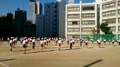 南大江小学校が工事で運動場が使用できないため、今年度の運動会が、11月3日に東中運動場で行われます。今週から、東中での練習が始まりました。とても不便で大変とは思いますが、頑張ってください。やがて、入学することになる東中で、思い出をつくってください。
