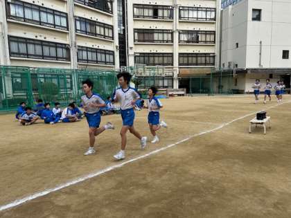 3時間目、2年生の保健体育科の授業がグランドで行われています。