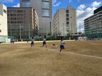 1500メートルの持久走!寒さに震えるどころか、半袖半パンで一生懸命に走っていました!