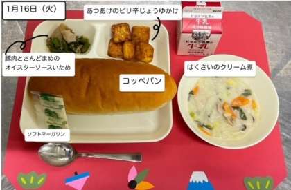 小雪がチラつく寒い日になっています。今日の給食では、はくさいのクリーム煮が提供されます。アツアツの料理は、冷えた身体を温めてくれます。しっかりいただいて、午後の活動もがんばりましょう!