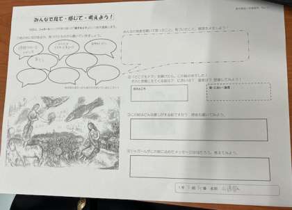 「見て、感じて、考えよう」と題して、鑑賞の学習が行われました。