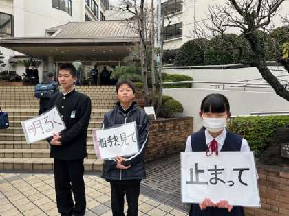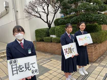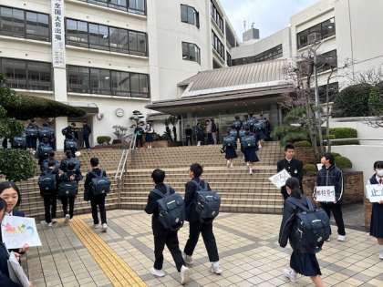 少し寒さがやわらいだ朝、風紀委員や生徒会の皆さんがあいさつ運動をしてくれました。