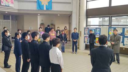 短縮授業でちょうど5時間目が始まる時間帯でしたので、他の生徒の参加はかないませんでしたが、職員室におられた先生方のほか、時間を合わせてきてくださったPTAの会長さんもご参加くださいました。