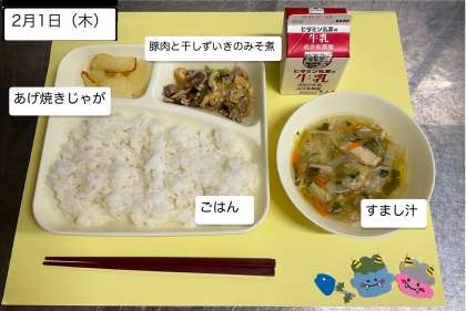 2月最初の給食です。しっかり食べて、午後の活動に取り組みましょう!