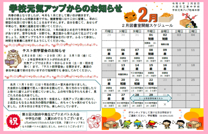 元気アップからのお知らせ(2月号)を掲載します。(こちらをクリックするとご覧いただけます。)