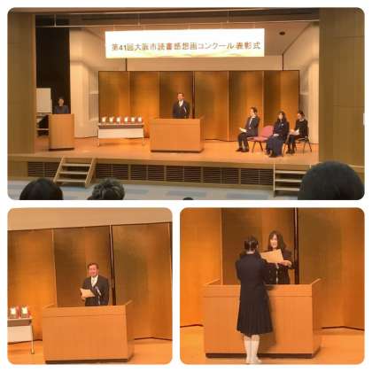 美術部の2年生が、第41回大阪市読書感想画コンクールで見事に優良賞を受賞。本日、大阪市立中央図書館で表彰式がありました。おめでとうございます。ますますの活躍を楽しみにしています。