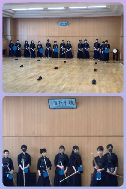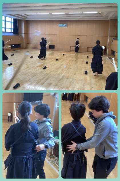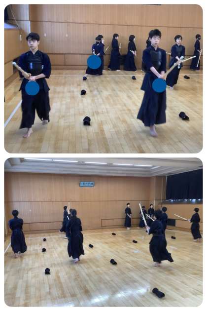 3連休の2日目。いつもは大きな声が飛び交う稽古が多いですが、今日はこの時間、静かに活動しています。技を競う剣道ですが、実は技を支える足元が大切です。足元を気にして視線を落とせば、その瞬間に打たれます。また、足捌(さば)きに気を取られて剣先が下がれば、その瞬間に打ち込まれます。部活動指導員の先生に、まさに手取り足取り指導を受けて、みるみる上達しています。自分のモノとし、自分でコントロールできるまでには、一人ひとりの高い意識と集中力、そして地道な繰り返し練習が必要です。