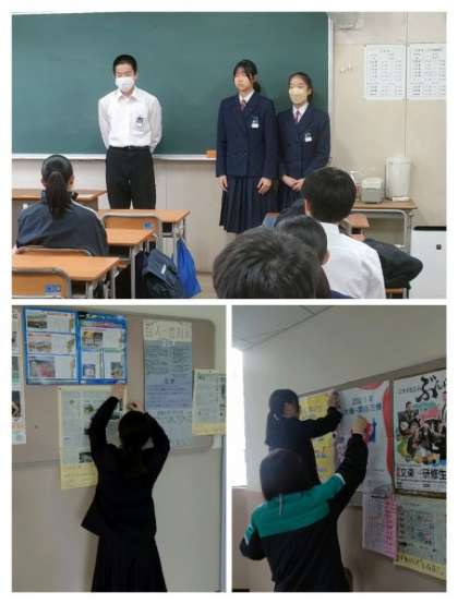 文化部は掲示板のポスターの貼り替えと新しい掲示物の作成を行っています。