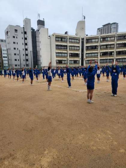 さぁ、開会式です。生徒たちの運営で、選手宣誓・諸注意に続いて、準備体操です。