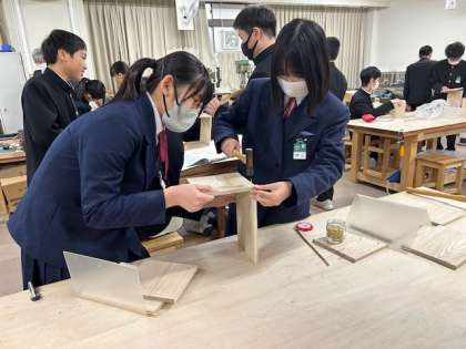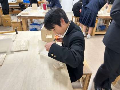 くぎをまっすぐ打ったり、取り付けたりとなかなか難しい作業を協力しながら行っています。