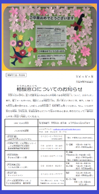 12(火)【2,3限:卒業式予行】午後:卒業式準備