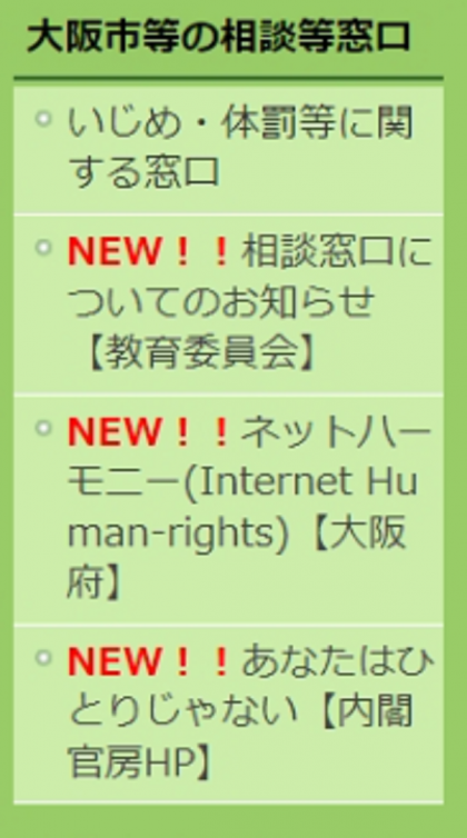 ・大阪市教育委員会「相談窓口についてのお知らせ」