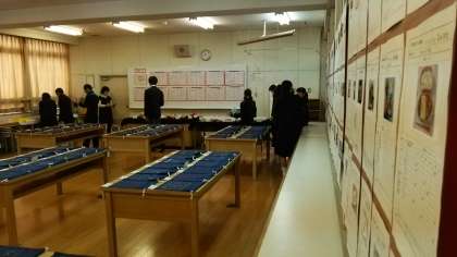 1年生は一階、2年生は四階、3年生は二、三階から見学開始です。