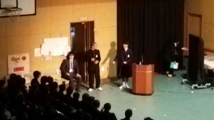 次の発表までの間、生徒会役員のひとがみんなに聞いていきます。