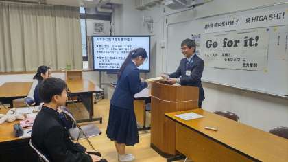 今日は放課後に中央区長がお見えになりました。なんと、本校の生徒会と技術部が区長表彰をしていただくことになったのです!