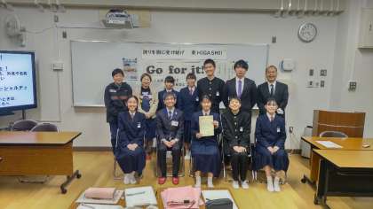 生徒会は、長年にわたり、これまでの校内行事の運営だけではなく、おおさか子ども市会や全国スマホサミットや大阪市のスマホサミットに出場し、本校での取り組みを広く紹介したほか、石川県で震災の被害にあわれた方々のために行った募金活動やコンタクトレンズケースのリサイクルなど、校内外を問わず、広く活動してきたことが表彰されました。