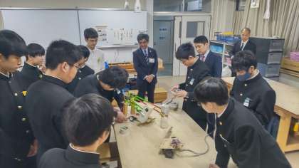 区長さんは生徒会表彰の後、技術室に足を運んで、技術部の生徒たちを表彰し、エールを送ってくださいました。