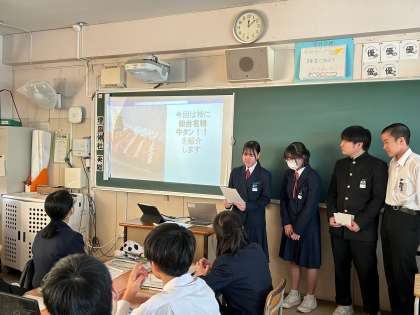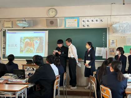 東北地方について、牛タン、秋田犬、楽天イーグルスなど楽しく発表していました。