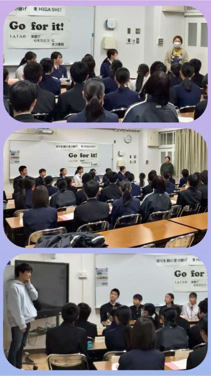 生徒の皆さんは、東中のさまざまな経験から、たくさんのことを学んでいると思います。経験は、一人ひとり異なりますが、生徒の皆さん一人ひとりが、その経験を具体的にどう生かしていくのかをしっかり考え、目標や決意を定め、挑んだ次のステージ・学年で、さらに成長されることを楽しみにしています。