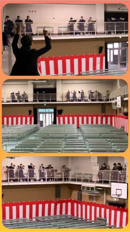 卒業式に向けて在校生代表と吹奏楽部の練習です。