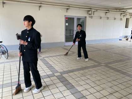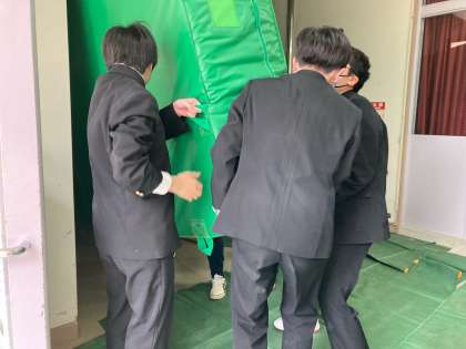 それぞれ班ごとに分かれて掃除や会場準備を行なっています。