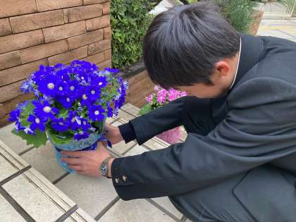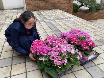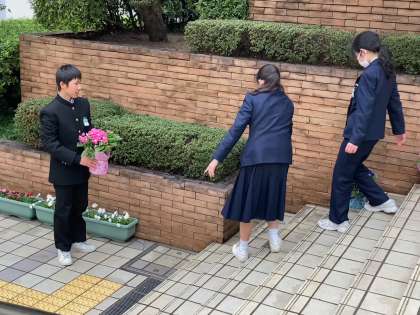 ガーデニング部の1年生で玄関を飾りました。